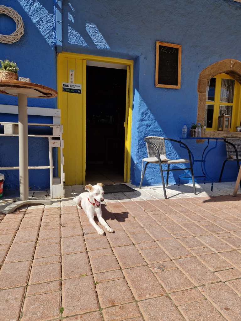 Im Westen der Bucht liegt der kleine Hafen mit seinem Sandstrand Limanaki Beach und den vielen Tavernen und Kaffees (P.S: Probiert doch mal die Hauspizza im Helios Kaffee).