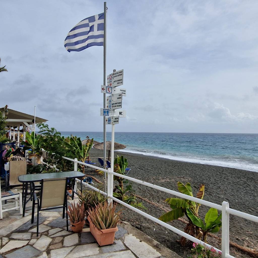 Besonders hervorzuheben ist der lange und breite Strand aus dunklem Sand. Aber auch die schöne verwinkelte Stadt mit weißen Häusern und die Promenade mit vielen guten Tavernen und netten Geschäften. Lohnenswert ist es auch noch einige Kilometer der Küstenstraße in Richtung Westen zu folgen. Immer wieder eröffnen sich Buchten mit schönen Badeplätzen oder auch steile Klippen in’s Meer. Die Gegend erinnert etwas an den Highway No 1 im Westen der USA.