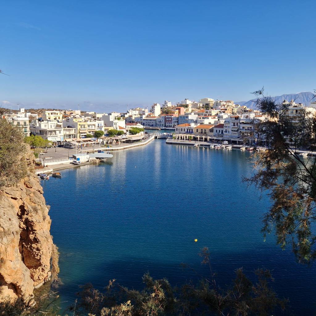 In der Mitte der knapp 12.000 Einwohner zählenden Stadt befindet sich der mit dem Meer verbundene Voulismeni-See, um den sich zahlreiche Tavernen und Bars ansiedeln. Es empfiehlt sich die Stufen hinauf zu den Tavernen über dem „See“ zu erklimmen und dann oben zumindest einen Kaffee zu genießen.