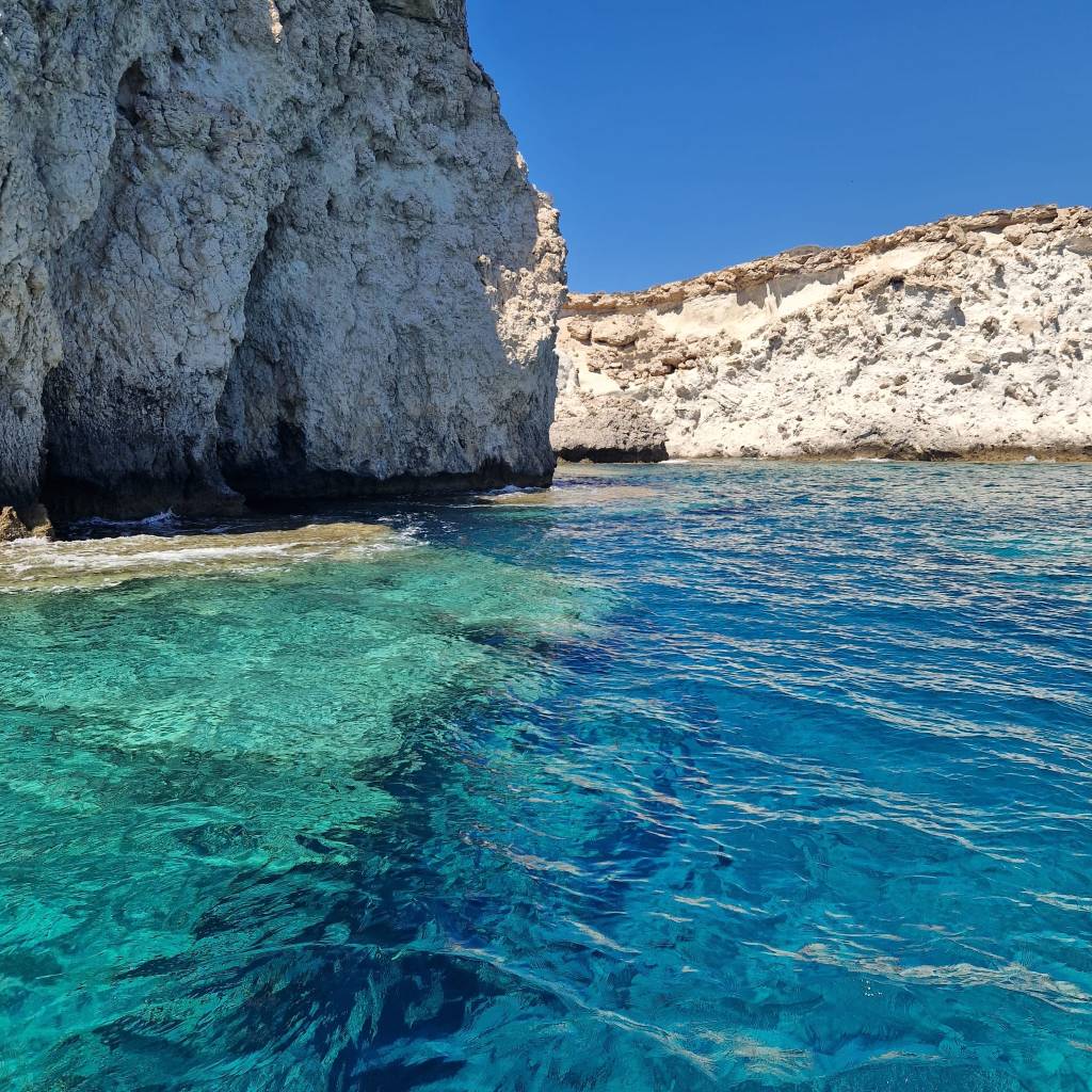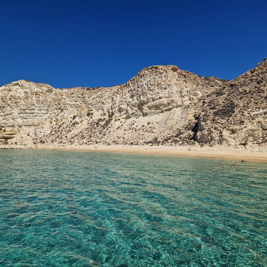 Der Ausflug lohnt sich aber! Das Schiff legt vormittags im Hafen von Makry Gialos ab und fährt entlang der Küste in Richtung Osten. Erster Halt ist eine wunderschöne Bucht mit glasklarem Wasser. Zeit zum Schwimmern und Schnorcheln. Danach wird die Insel umrundet und während man bei einem zweiten Aufenthalt den Strand erkundet, wird an Board ein leckeres Mittagessen zubereitet.