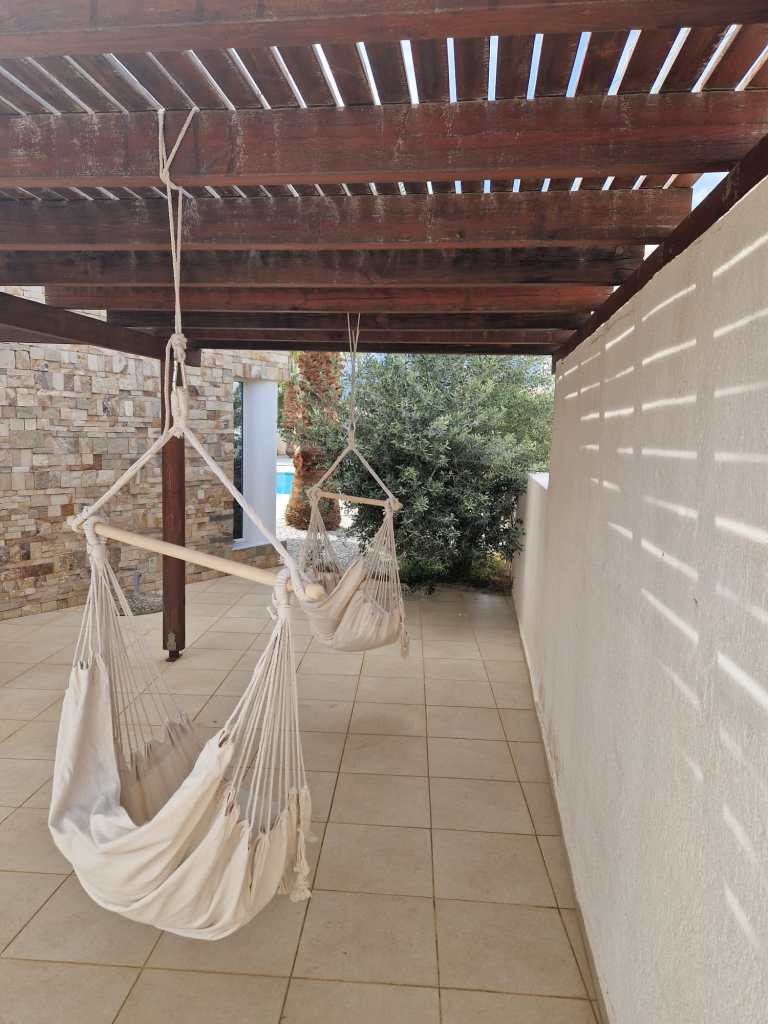 Als besonderes Highlight bietet nur die Villa 1 neben bzw. hinter dem Haus eine private und beschattete Chill-Area mit Hängesessel an. Gerne können auch die vorhandenen vier Liegestühle (oft zu finden auf der Dachterrasse) verwendet werden.