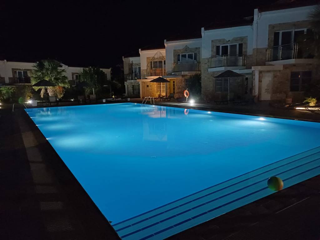 Besonders schön präsentiert sich der Pool nachts mit eingeschalteter LED-Poolbeleuchtung.